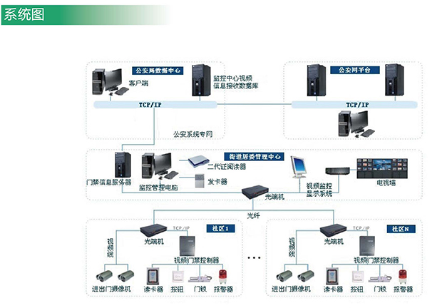 系統(tǒng)基于門禁管理系統(tǒng),擴(kuò)展訪客登記、公安政務(wù)網(wǎng)對接、信息采集、數(shù)據(jù)上傳、視頻抓拍、報警聯(lián)動、信息顯示等應(yīng)用功能,實現(xiàn)社區(qū)管理中心--街道居委登記管理--公安系統(tǒng)的多級聯(lián)網(wǎng)和信息實時共享,實現(xiàn)平安社區(qū)和標(biāo)準(zhǔn)化工地人員信息采集和進(jìn)出人數(shù)統(tǒng)計、人員圖像抓拍顯示,提高社區(qū)及工地的安全管理,為治安聯(lián)防、公安部門提供完備的人口信息采集、人員流動信息管理數(shù)據(jù)。